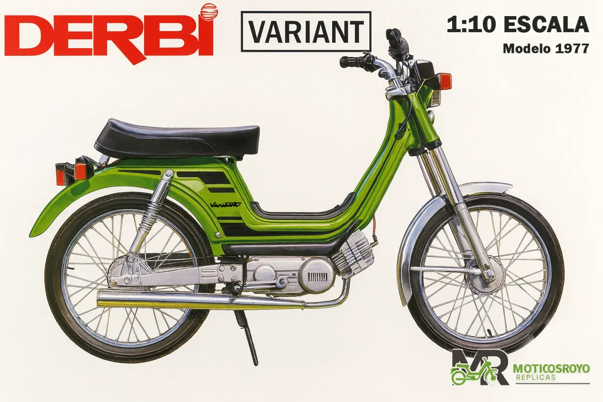 Y una vez publicados los llaveros empieza lo bueno. Vamos a publicar poco a poco las maquetas de Derbi Variant. El objetivo es hacer réplicas de la mayoría de los modelos que Variant que Derbi fabricó (que son muchos, y que sorprendentemente es muy complicado identificar las diferentes versiones que existieron y sobre todo al principio). Y como para contar una historia no hay nada mejor que empezar por el principio, pues el primer modelo será la Variant de 1977, la primera de todas, que si no la conocéis es la siguiente: